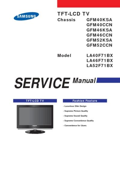 Currently you are looking with regard to an Samsung La40f71bx Service Manual Repair Guide example that we provide here inside some form of document formats many of these as PDF, Doc, Strength Point, and also images that will make it simpler for you to create an Samsung La40f71bx Service Manual Repair Guide yourself. For a clearer look, you can open some examples below. All the good examples about Samsung La40f71bx Service Manual Repair Guide with this web site, we get from a number of sources so you could create a better file of your own.